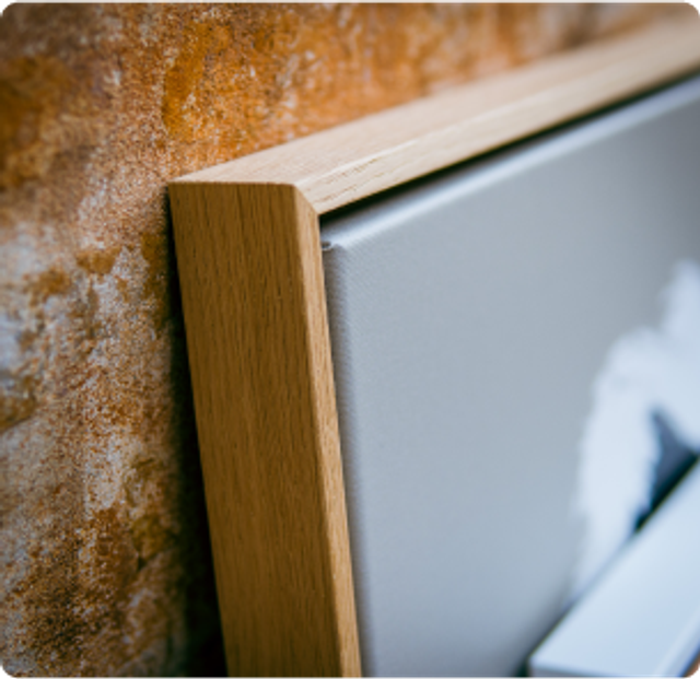 Our printed canvas floater frames are crafted from poplar hardwood, giving your canvas the appearance of floating within the frame.